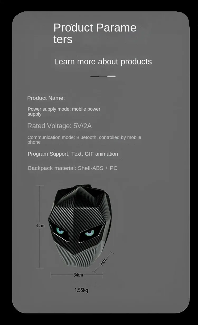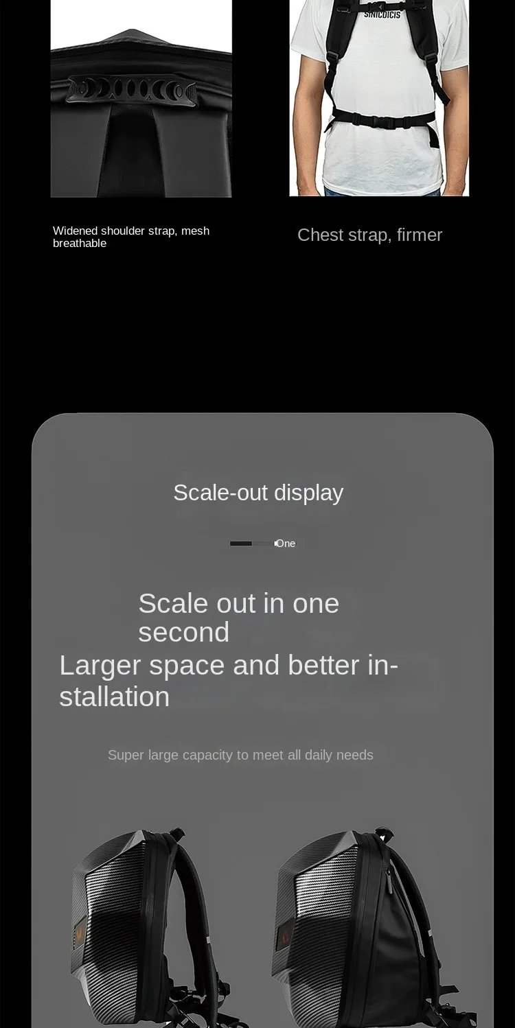 【Material】LED smart backpack appearance purchase 3D hardcore waterproof material; Color matrix screen, support text, images, GIF and other formats; adjustable strap size; breathable material for the back
