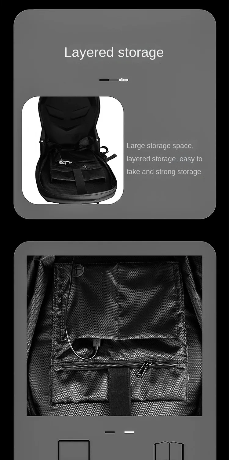 【How to use】Search your mobile phone or directly scan the code to download the app, connect the mobile power supply through the built-in USB data port on the back, turn on Bluetooth and scan the QR code to link the backpack. You can connect the device and use it.