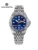 Dial: Sunburst Enamel Blue/Sunburst Enamel Silver, Printed Logo, Applied Indices