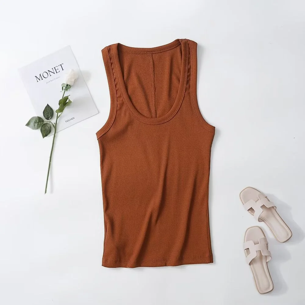 Spring/Summer New Product Women’s Slim Fit Solid Color Suspended Ribbed Tank Top Spicy Girl Style T-shirt