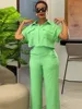 Two Piece Sets Women Outifits 2023 Summer Fashion Print Turn-Down Collar Short Sleeve Tied Detail Top & Casual Pocket Shorts Set