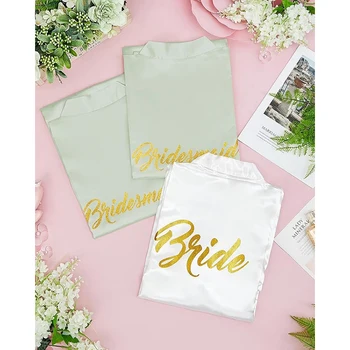 10 Pcs Women Bride Kimono Robe Embroidered Getting Ready Satin Bridesmaid Robes for Wedding Party Bridal Shower