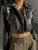 Women Crop Leather Jacket Solid Black Casual Long Sleeve Button Down Jacket Fall Outwear