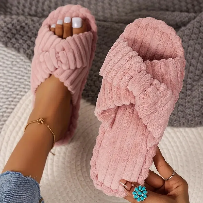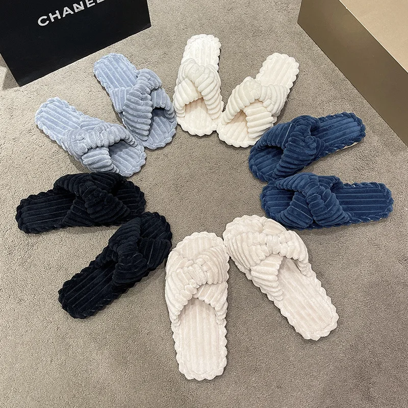Women's Autumn/Winter New Cotton Non slip Home Slippers Warm Toe Cross Flat Bottom Slippers