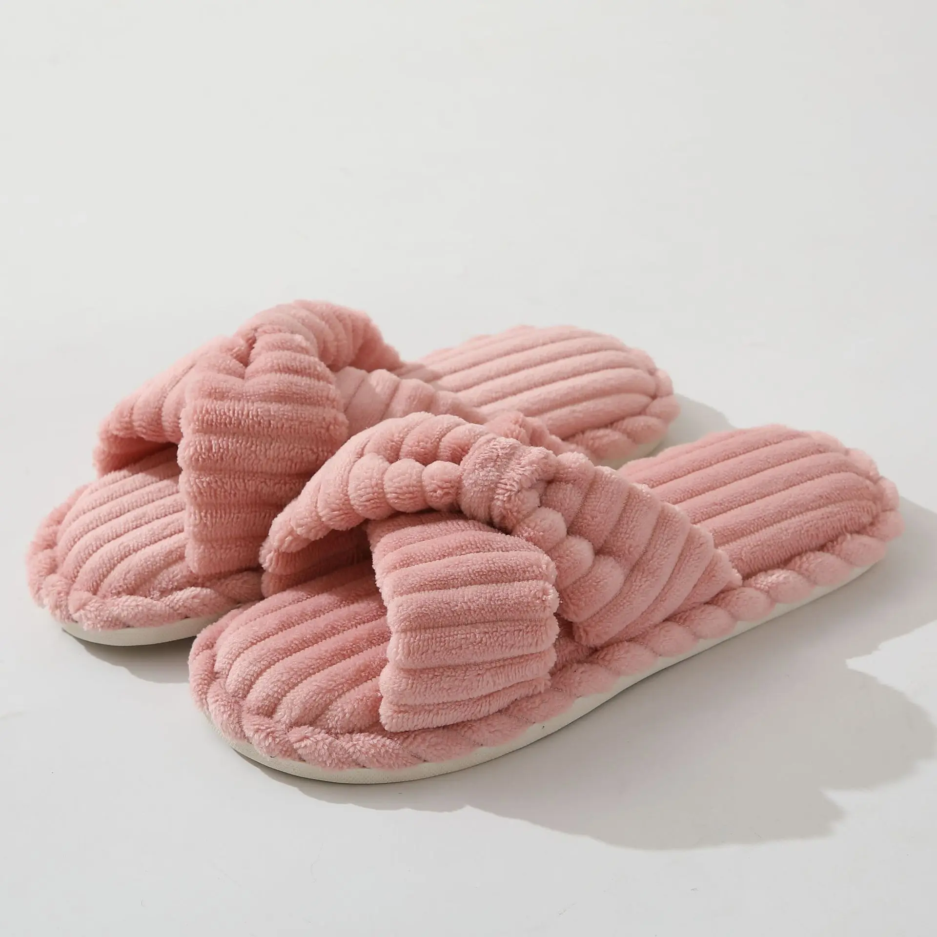 Women’s Autumn/Winter New Cotton Non slip Home Slippers Warm Toe Cross Flat Bottom Slippers