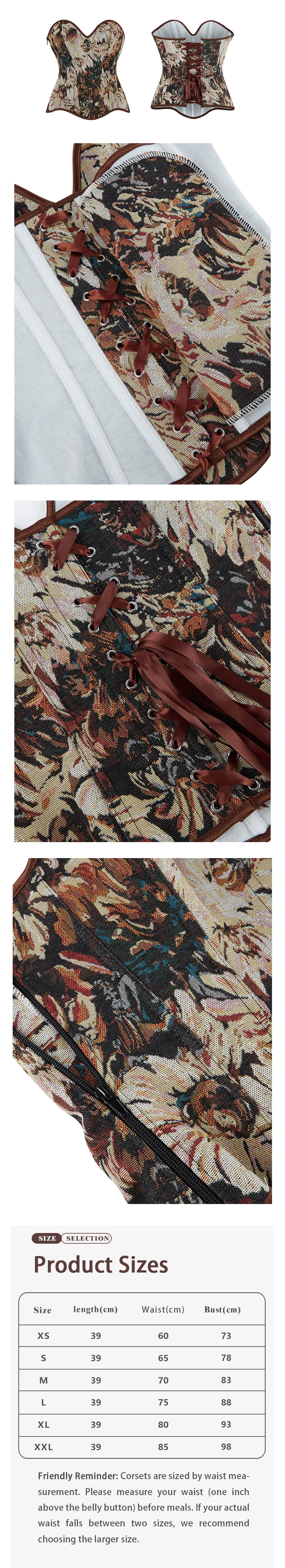 Women’s New Oil Painting Floral Corset, Sexy Strapless Renaissance Bustier Top, Side Zipper Vintage Waist Cinching Shapewear