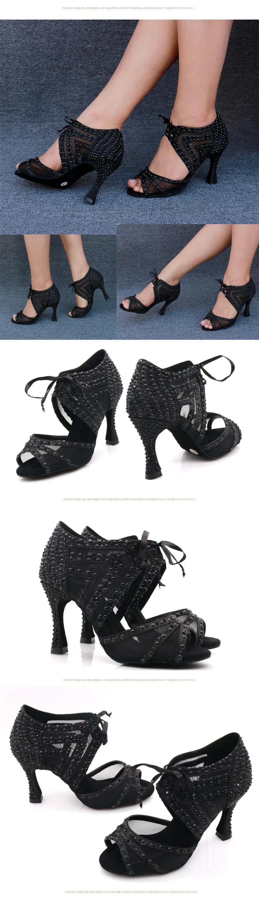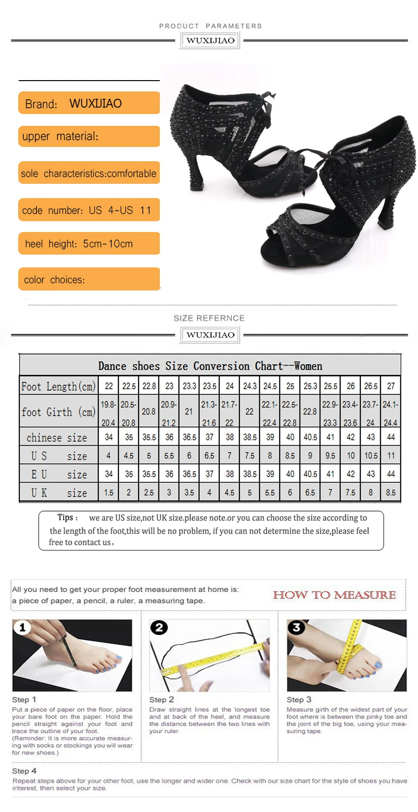Be the first to review “WUXIJIAO Brand Latin dance pearl decoration shoes soft bottom shoes salsa ballroom women lace high heel dance shoes Cuban heels”